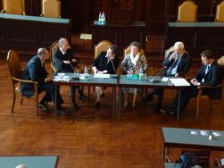 Unter dem Motto „Sichtbar – achtbar – wunderbar“ stand die Großveranstaltung des Ökumenischen Kirchentages am letzten Junisamstag in Sonneberg. Die Ökumenische Bewegung ist eine christliche Bewegung, die eine weltweite Einigung und Kooperation der verschiedenen christlichen Kirchen anstrebt. Regenwetter und kühle Temperaturen machten den Veranstaltern allerdings einen Strich durch die Rechnung. Nur wenige Besucher kamen auf den Rathausvorplatz. Das geplante Kinder-Kirchentag-Fest fiel buchstäblich ins Wasser. Die Workshops im Rathaus und die Diskussionsrunde im Rathaussaal verfolgten auch nur wenige Besucher, obwohl die Workshops mit Sebastian Holzbrecher (Uni Erfurt) und Prof. Dr. Dorothea Sattler, die Direktorin des Ökumenischen Instituts München hochkarätig besetzt waren. An der Podiumsdiskussion zum Thema „Toleranz“, an denen neben den Workshop-Leitern auch Joachim Wanke, der Koadjutor-Bischof des Apostolischen Administrators im Bischöflichen Amt Erfurt, sowie Ilse Junkermann, Landesbischöfin der Evangelischen Kirche in Mitteldeutschland (EKM) teilnahmen. che